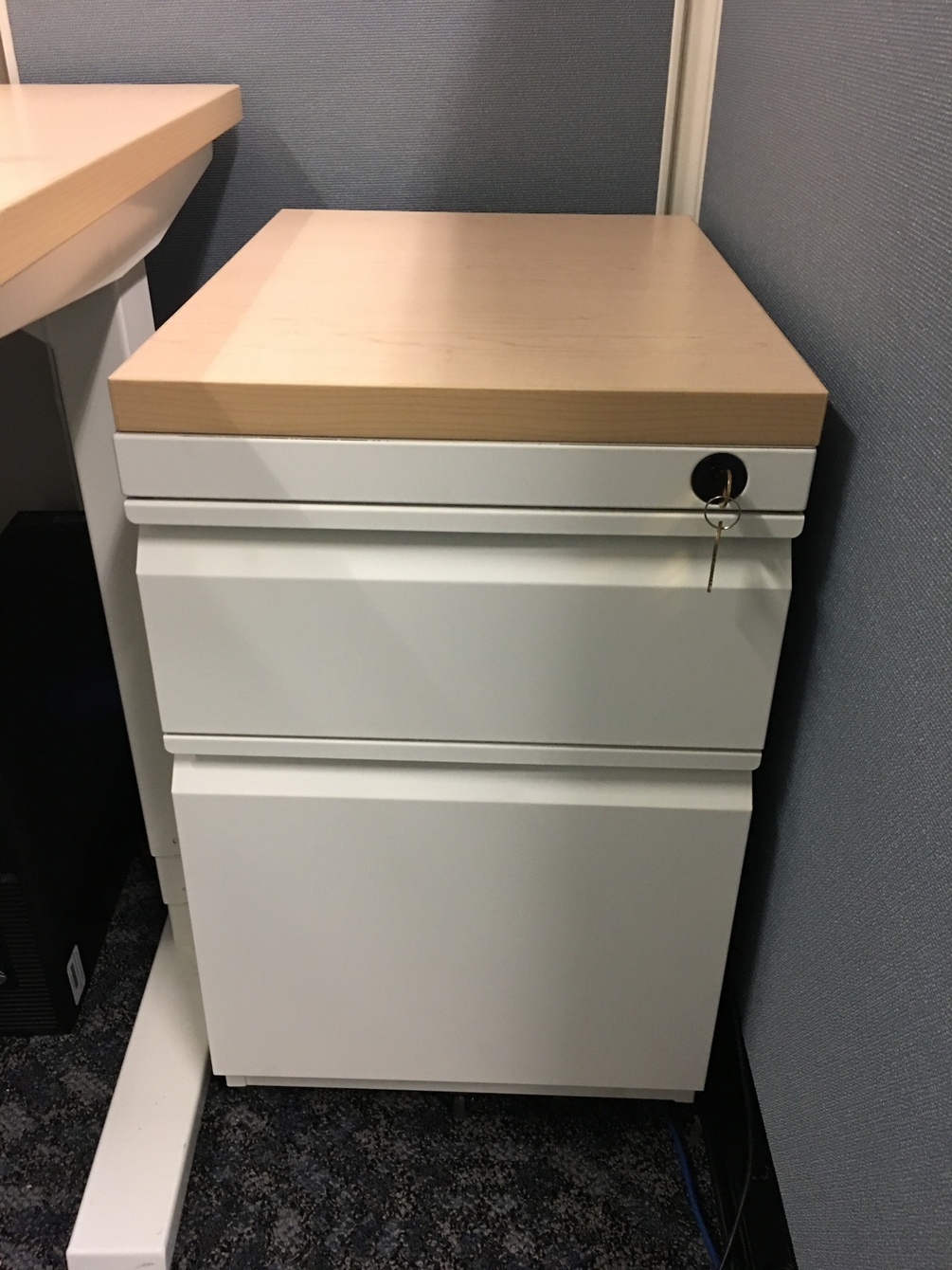 Pedestal file in white frost with hard rock maple top.